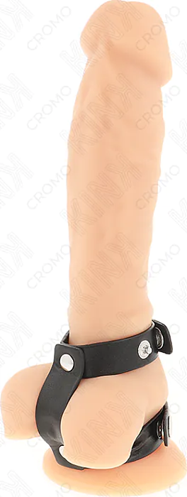 Stimulez vos sens avec l'anneau pénis double de KINK, conçu pour intensifier vos moments intimes. Fabriqué en cuir de haute qualité, il assure un ajustement confortable tout en offrant un contrôle optimal grâce à ses correas ajustables et ses pinzas intégrées pour une excitation supplémentaire.
