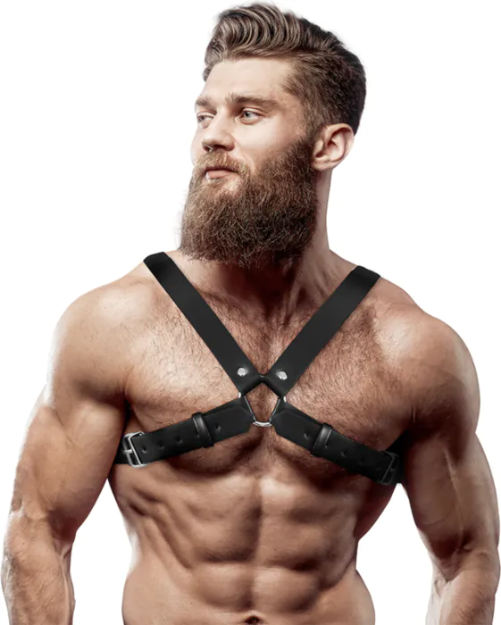 Affiche ta sensualité avec cet arnés en éco-cuir, conçu pour s'adapter à toutes les morphologies. Indiqué pour ceux qui veulent se démarquer.