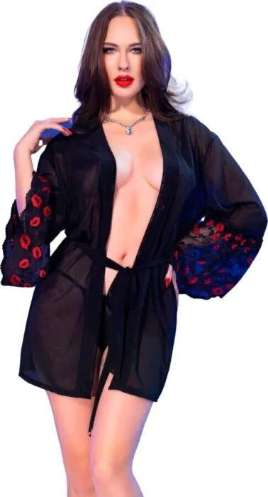 Élégance et sensualité se rencontrent dans ce babydoll en maille douce et légère qui caresse votre peau. Les manches larges ornées d'encaje aux baisers rouges apportent une touche espiègle, tandis que le lazo ajustable à la taille sublime vos courbes. Composé de 90 % de polyamide et 10 % d'élasthanne, il assure confort et allure à chaque port.