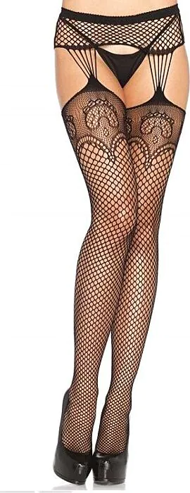 Ces bas en résille avec effet jarretière apportent une touche provocante à votre tenue. Parfaits pour le jour ou la nuit, ils s'adaptent à toutes les silhouettes.