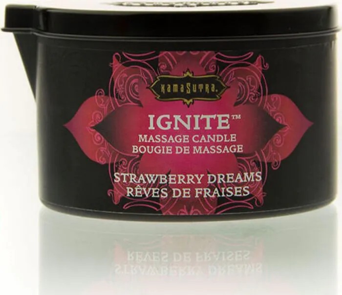 Bougie de massage parfumée KAMASUTRA qui fond en une huile tiède et nourrissante — beurre de karité, huile de jus de fraise et vitamine E. Convient pour des massages sensuels et pour prendre soin de la peau. Format généreux (170 g) et cuillère incluse pour verser sans éclaboussures. Pour qui veut un massage gourmand et chaleureux, facilement utilisable à la maison.