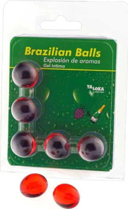Profitez d'une expérience sensorielle unique avec les 5 bolas Brazilian Balls de Taloka. Parfaites pour des massages intimes, elles libèrent un agréable arôme de fraises et champagne lors de leur dissolution.