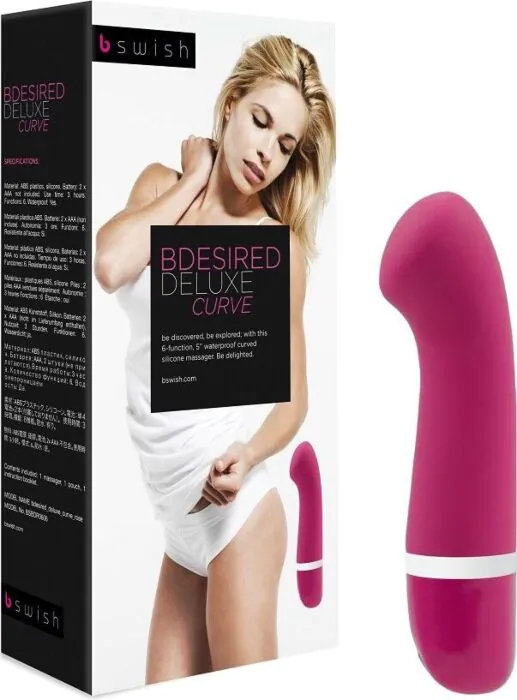 Le Bdesired Deluxe Curve offre une stimulation ciblée du point G avec sa courbure sensuelle et ses 6 fonctions de vibration. Conçu pour tous les niveaux d'expérience, il est recommandé pour l'utilisation individuelle ou en couple.