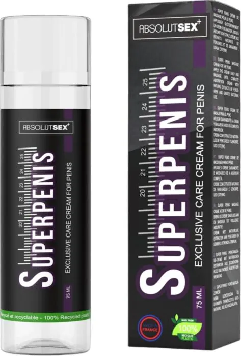 Voici une crème de soin spécifiquement pensée pour le pénis : RUF SuperPenis est présentée en flacon de 75 ml et contient de l'eucalyptol, ingrédient aromatique qui apporte une note fraîche et mentholée au parfum. C'est un produit de soin, à appliquer quotidiennement sur toute la longueur du pénis et à masser jusqu'à absorption complète pour hydrater et parfumer la zone sans charge grasse apparente.