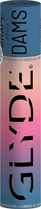Feuilles fines en latex SHEER GLYDE, conçues comme barrière pour le sexe oral (vaginal ou anal). Parfum raisin et format portable en pack de 4 lingettes : pratique à glisser dans un sac. Pour toi qui veux une protection simple, discrète et plus agréable à l’odeur que le latex neutre.