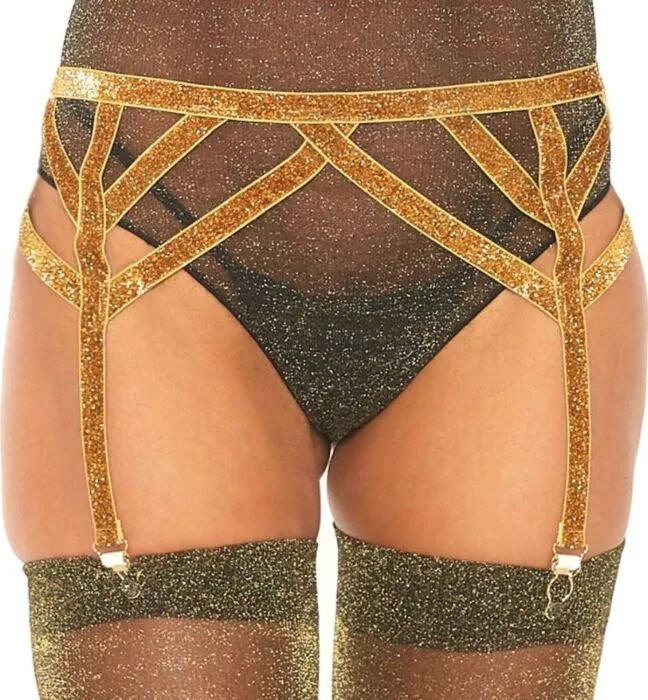Un liguero en lurex doré qui met en valeur votre silhouette tout en ajoutant une touche de sensualité. Taille distinctive qui s'adapte à la plupart des morphologies.