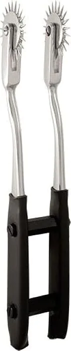 Double stimulation sensorielle grâce à ses deux roues électrifiées. Avec chaque mouvement, vous ressentez une douce caresse sur la peau, amplifiée par les picots qui éveillent les sens. Fabriqué avec des contacts en laiton plaqué, ce jouet est conçu pour une utilisation agréable et sécurisée.