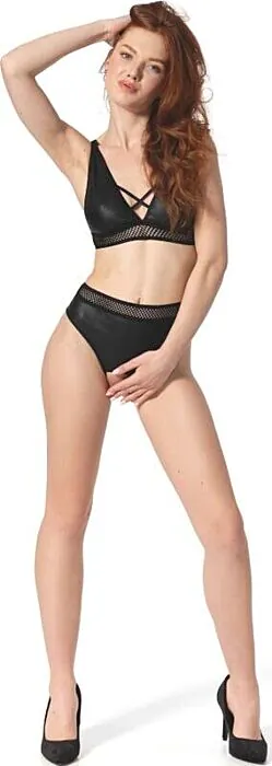 L'ensemble KRISTEEN se marie parfaitement avec des bas en résille ou un porte-jarretelles pour un look encore plus audacieux.