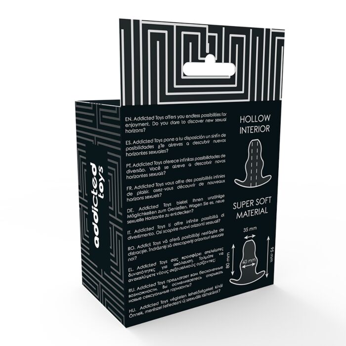 Le plug anal "Addicted" est bien plus qu'un simple jouet. Avec son design innovant, il intègre deux anneaux de tailles différentes qui vous permettent d'explorer des sensations uniques au fur et à mesure que vous vous plongez dans un monde de plaisir. Commencez avec l'anneau le plus petit et expérimentez comment il s'élargit à mesure que vous l'insérez plus profondément. Son tube creux vous offre la possibilité de combiner ce plug anal de différentes manières, en ajoutant des vibromasseurs, des lubrifiants ou d'autres objets de votre choix à travers l'orifice.