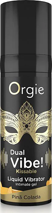 Je te présente Dual Vibe d'Orgie comme on le ferait en boutique: c'est un gel stimulant sous forme de « vibrateur liquide » — une texture gelée, aromatisée, conçue pour être BesableEt appliquer directement sur la zone intime. Son atout principal, confirmé par la marque, est d'apporter une sensation vibrante et d'augmenter la sensibilité des zones érogènes tout en ajoutant un goût Piña Colada rafraîchissant. Le flacon doseur de 15 ml est pratique pour un usage ponctuel ou pour essayer ce type de produit.