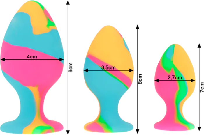 Libère ton côté sauvage avec ce set de plugs anaux au design tie-dye. Recommandé pour explorer de nouvelles sensations, en solo ou en duo.