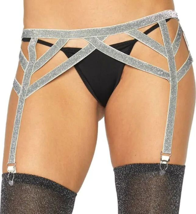 Sublime ton allure avec ce liguero en lurex argenté de Leg Avenue. Recommandé pour celles qui souhaitent ajouter une touche de séduction à leur lingerie.