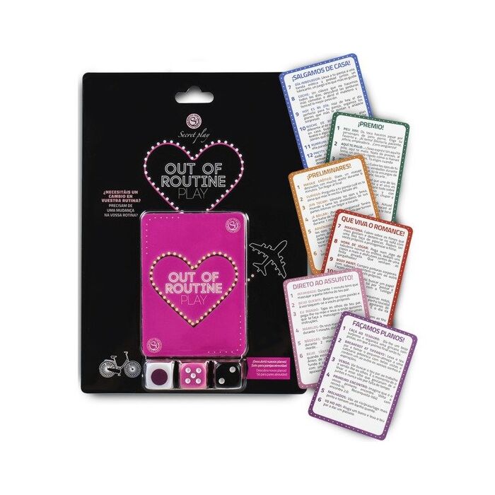 ¡Donnez une touche excitante à votre vie intime avec le jeu passionnant "Out of routine play" de Secret Play ! Ravivez la passion et rompez avec la monotonie en couple. Êtes-vous prêt à découvrir de nouvelles expériences et à relever des défis excitants ? Lancez les dés et plongez dans un monde de plaisir et de passion !