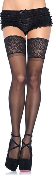 Ellos te harán sentir irresistible desde el primer momento. Las medias negras autoadhesivas de Leg Avenue presentan un encaje ancho que realza la sensualidad de tus piernas. Compuestas por un 85% de polyamide y un 15% de spandex, ofrecen un ajuste cómodo y flexible.