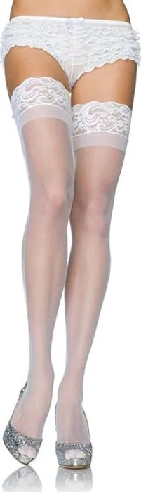 Élégants et séduisants, ces bas blancs de Leg Avenue avec silicone et dentelle s'adaptent parfaitement à votre silhouette pour un look irrésistible.