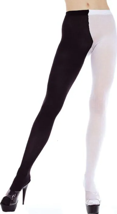 Collants opaques taille XXL de la marque Music Legs, avec une jambe noire et l’autre blanche pour un effet graphique immédiat. Coupe lisse et finition opaque qui masque et affine la jambe. Conçus pour celles qui veulent une pièce forte dans leur garde-robe, tout en recherchant un maintien confortable propre aux collants opaques.
