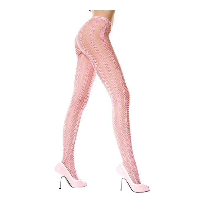 Ce que tu tiens entre les mains : des pantys de red con diseño de dibujos verticales, proposés par Music Legs, conçus pour jouer la carte de la séduction sans en faire trop. Le tissu en résille crée un rendu léger et aéré ; le motif vertical attire l'oeil vers la longueur de la jambe, donnant une impression d'allongement. La teinte rose ajoute une note féminine et douce.