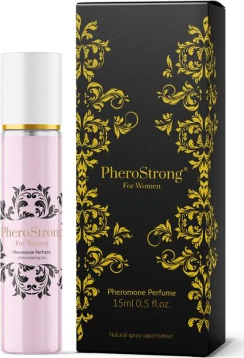 Le parfum Pherostrong, enrichi en phéromones, stimule le désir masculin. Sa fragrance fruitée et florale est conçue pour les femmes audacieuses.