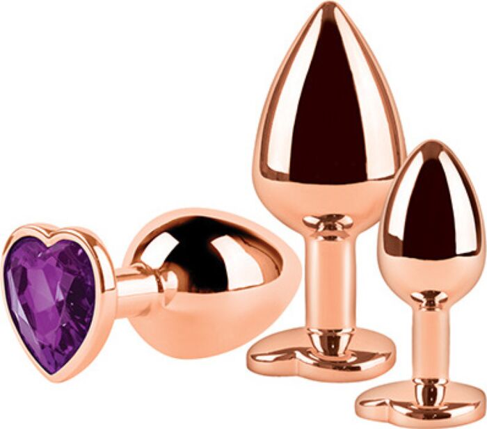 Lot de trois plugs métalliques au profil fin et conique, pensés pour une initiation progressive à la stimulation anale. Tu bénéficies d'une prise sûre grâce à leur base plate ornée d'un bijou en forme de cœur et de la possibilité de jouer avec la température du métal. Un choix pour qui veut sensations fermes et finition élégante.