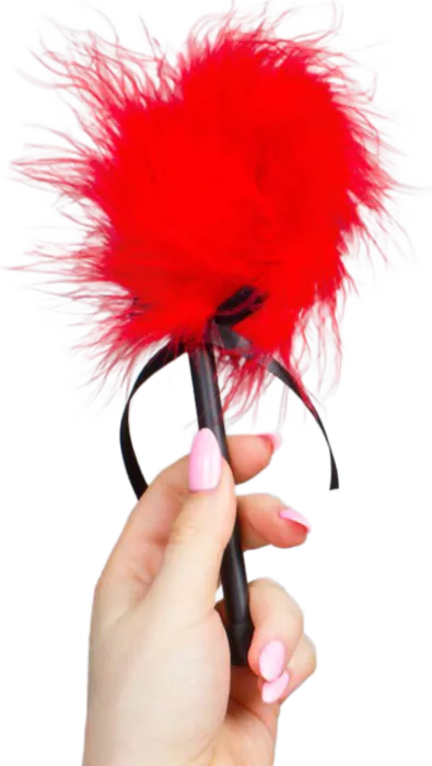Délicat plumero de marabú rouge pour éveiller les sens. Indiqué pour les jeux érotiques, ce jouet est conçu pour apporter douceur et plaisir.