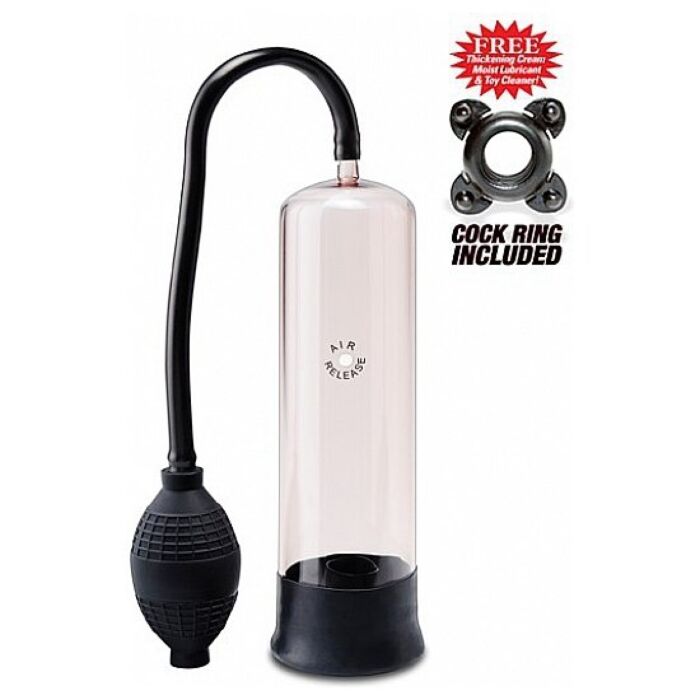Su boquilla elástica se aprieta perfectamente con tu pene, lo que forma un sello perfecto que crea un vació de gran alcance dentro de la cámara, de esta forma obligando a tu pene a expandirse rápidamente, proporcionándote un miembro mucho más largo, grueso y poderoso. Además gracias a su cilindro trasparente podrás ver como tu miembro comienza a recibir todo el poder que la bomba te proporciona, así verás cómo tu pene comienza a ocupar más espacio del cilindro con cada bombeo que das, lo cual te dará una grata sensación.