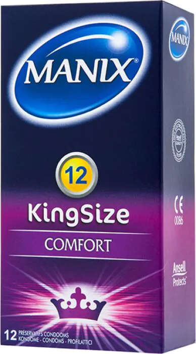 Manix King Size : préservatifs en latex naturel pensés pour qui recherche un peu plus d'aisance qu'un modèle standard. Lubrifiés, avec réservoir et une légère senteur vanille, ils offrent un ajustement confortable et une protection fiable pour les rapports courants. Boîte pratique de 12 unités.