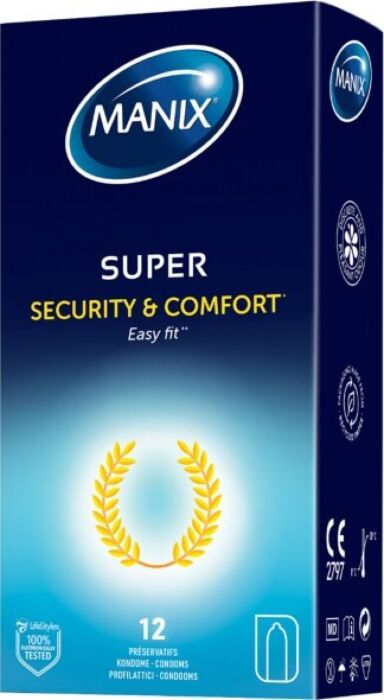 Manix Super 12 sont des préservatifs classiques en latex naturel, lubrifiés et conçus pour un port confortable au quotidien. La largeur nominale 52 mm offre un ajustement standard adapté à la plupart des personnes. Présentés en boîte de 12, ils conviennent à celles et ceux qui cherchent une protection fiable et discrète pour les rapports pénétratifs.