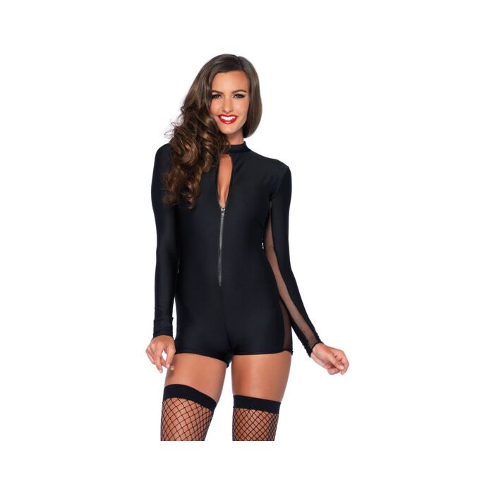 Robe à manches longues avec fermeture éclair sur le devant - noir