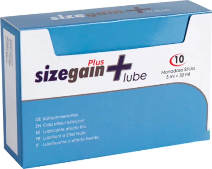 Sizegain Plus est un lubrifiant intime à base d'eau proposé en format voyage: 10 sachets unidoses de 5 ml offrant un effet froid tonifiant. En boutique je le recommande souvent à ceux qui cherchent une sensation de fraîcheur localisée sur le gland et une lubrification immédiate, le tout en format très hygiénique et discret pour emporter partout.