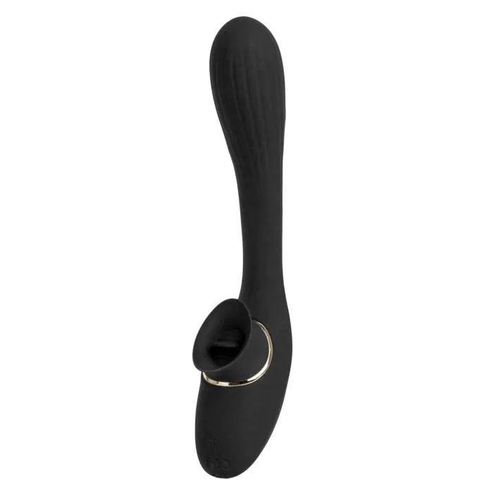 Si tu cherches un vibromasseur qui travaille le point G tout en stimulant le clitoris, viens voir celui-ci comme si tu étais en boutique. Dual Pleasures associe une partie insérable douce et légèrement flexible à une « langue » très souple qui tapote et caresse le clitoris. Les deux moteurs sont indépendants : tu peux ajuster séparément les vibrations internes et les motifs de la langue pour trouver la combinaison qui te convient.