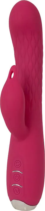 Eric est un vibromasseur rabbit pensé pour combiner pénétration confortable et stimulation directe du clitoris. L'axe est droit et suffisamment rigide avec une pointe arrondie pour faciliter l'insertion, tandis que le rabbit possède une petite « langue » qui cible précisément le clitoris. Le vrai plus ici : un moteur interne à billes qui génère un mouvement rotatif, apportant une dynamique différente de la vibration classique. Trois boutons rendent la prise en main intuitive et la fonction mémoire reprend le dernier réglage utilisé pour ne pas recommencer à zéro.